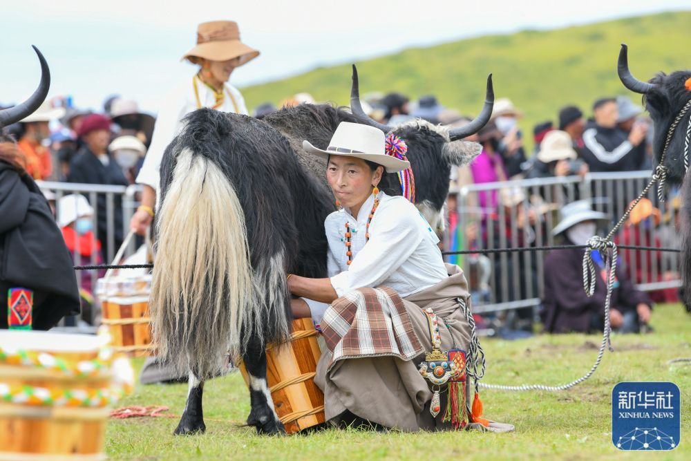 8月25日,四川省阿壩藏族羌族自治州紅原縣舉行第十一屆牦牛文化節牦牛產奶量比賽。紅原縣是優良地方牦牛品種麥洼牦牛的核心產區,擠牦牛奶是當地藏族群眾重要的生產生活方式,當地旨在通過此項賽事讓更多人了解到牦牛文化的獨特魅力。(新華社記者 王曦 攝)