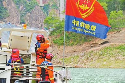 涼山消防救援支隊的水上小組沿金沙江展開搜尋工作。