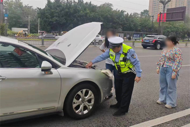 經了解,違停車輛上4人均為節日期間自駕來蓉旅行的游客,因車輛熄火,無法啟動,才不得已違停在路邊。民警聞訊后,立即幫助駕駛員放置好警示牌并打開車輛引擎蓋排查車輛故障,經詳細檢查后,確定該車輛因機械故障已無法正常上路行駛。民警隨即提醒游客聯系拖車將車輛拖移至修車廠修理,并貼心將游客送往目的地,下車時,游客向民警遞來一瓶礦泉水,并連聲表示感謝。