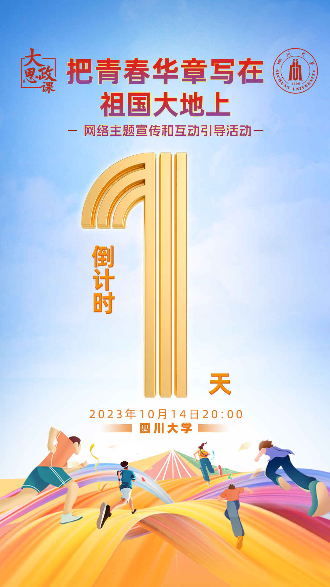 10月14日晚,“把青春華章寫在祖國大地上”網絡主題宣傳和互動引導活動將在四川大學舉行。三十余位來自不同行業、不同領域,用奮斗承擔青春使命之責、用奮斗譜寫青春華章的杰出代表,將圍繞“青春奮斗”與莘莘學子對話青春、共敘成長。