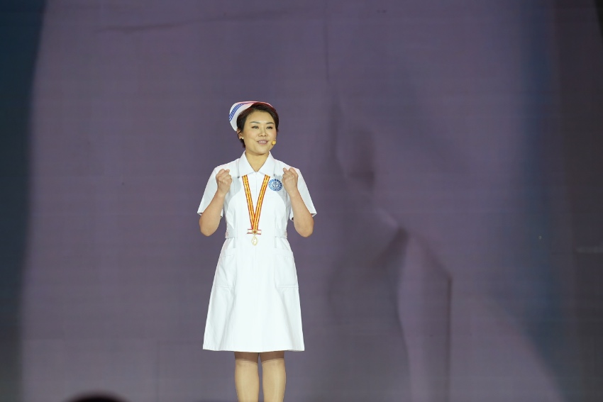 “今天我給同學們講的這個主題是‘獎章沉甸甸’,一方面想表達的是,人生的獎章有很多種,對于我而言,南丁格爾獎章是,患者的微笑也是。另一方面想告訴年青的同學們,青春就是生命賦予你的獎章,拼博就是追夢路上最美的姿態!”蔣艷在接受采訪時表達了對青年人的祝福,她說:“青年一代施展才干的舞臺無比廣闊,實現夢想的前景無比光明,祝福他們青春有夢,快樂奔跑!”