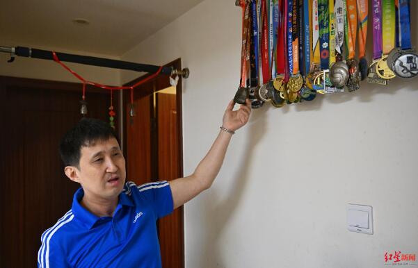 北京、西昌、敦煌、眉山、遂寧、南充……陳光炅借助馬拉松,通過奔跑的力量去了一座座城市。各個城市的馬拉松賽事獎牌被他掛在客廳里,一根欄桿滿滿當當。期間,陳光炅還以自己的跑步經歷為主題寫了一本書《黑暗馬拉松》。