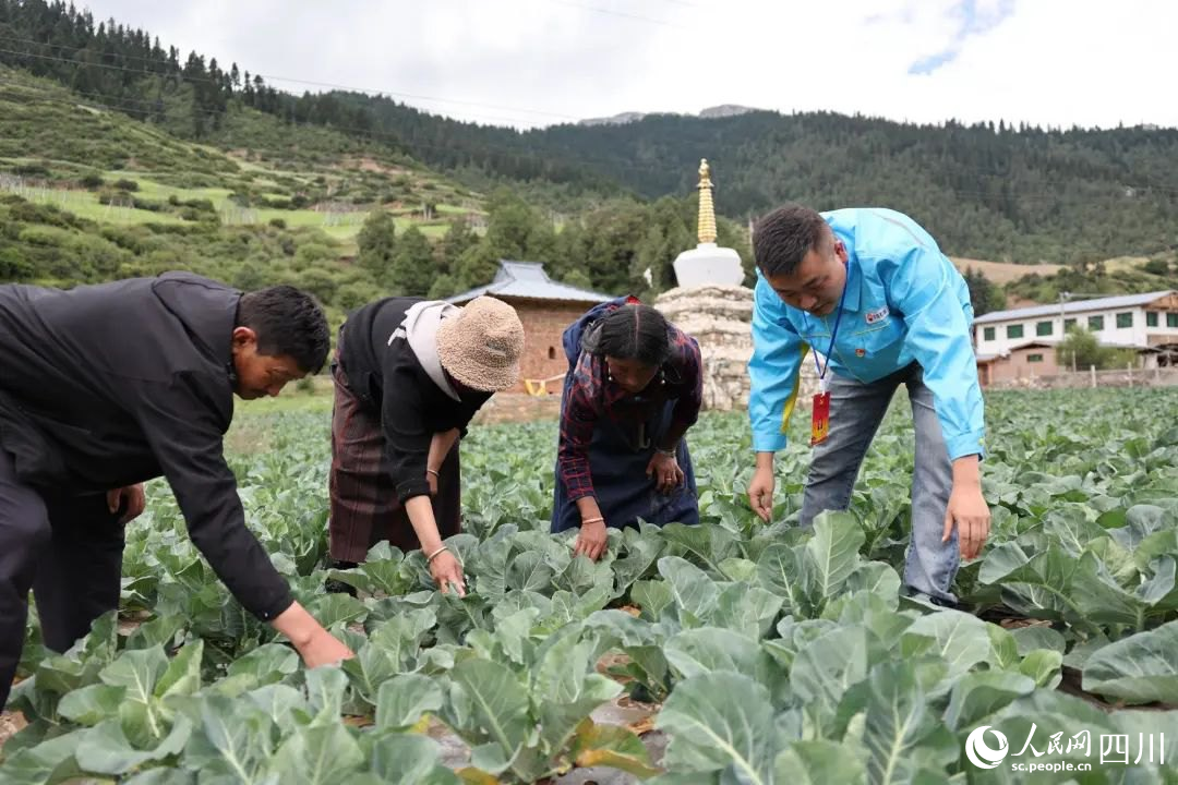 金秋十月,川西高原陽光和煦,微風不燥。在阿壩藏族羌族自治州若爾蓋縣占哇鄉畢崗村,中國石油四川銷售公司鄉村振興駐村干部胡鵬正和村民們在蔬菜地里清理雜草、查看長勢。