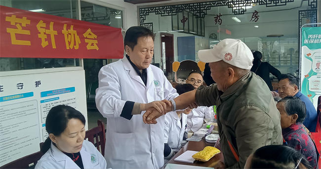 四川省名中醫、四川省中醫芒針協會會長、唐氏芒針第四代非遺傳承人唐德厚為群眾診療。九三學社四川省直工委供圖