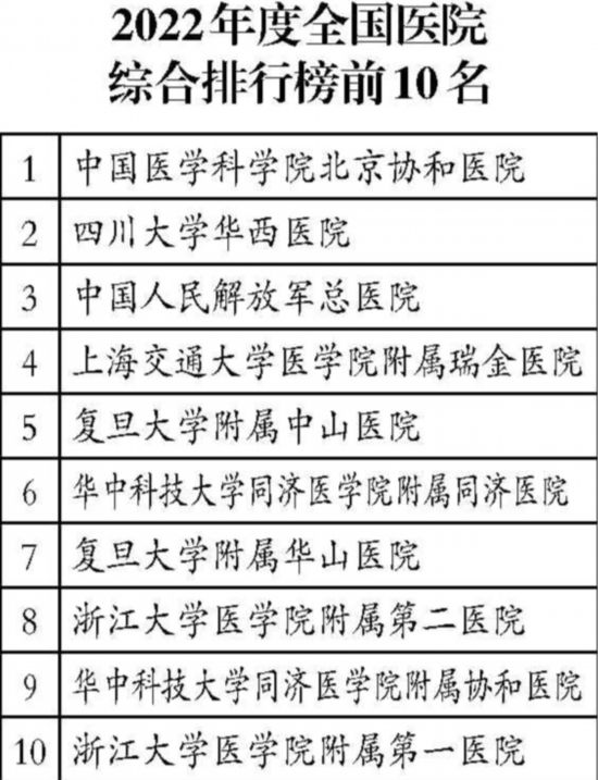 據記者了解,中國醫學科學院北京協和醫院、四川大學華西醫院和中國人民解放軍總醫院榮膺綜合榜前三,這已是三家醫院連續14年穩居綜合榜前三甲。