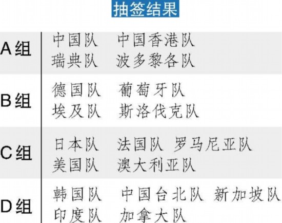 12月3日下午,2023成都國際乒聯混合團體世界杯進行了抽簽儀式,中國隊、德國隊、日本隊、韓國隊作為前四號種子分別進入了四個小組的第一位。
