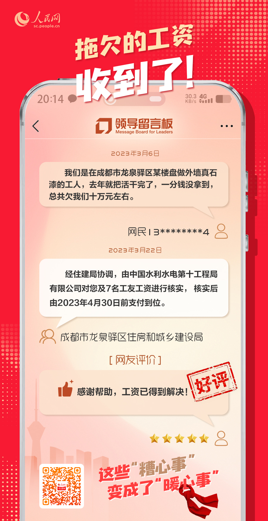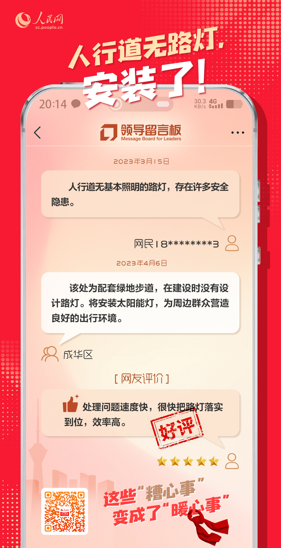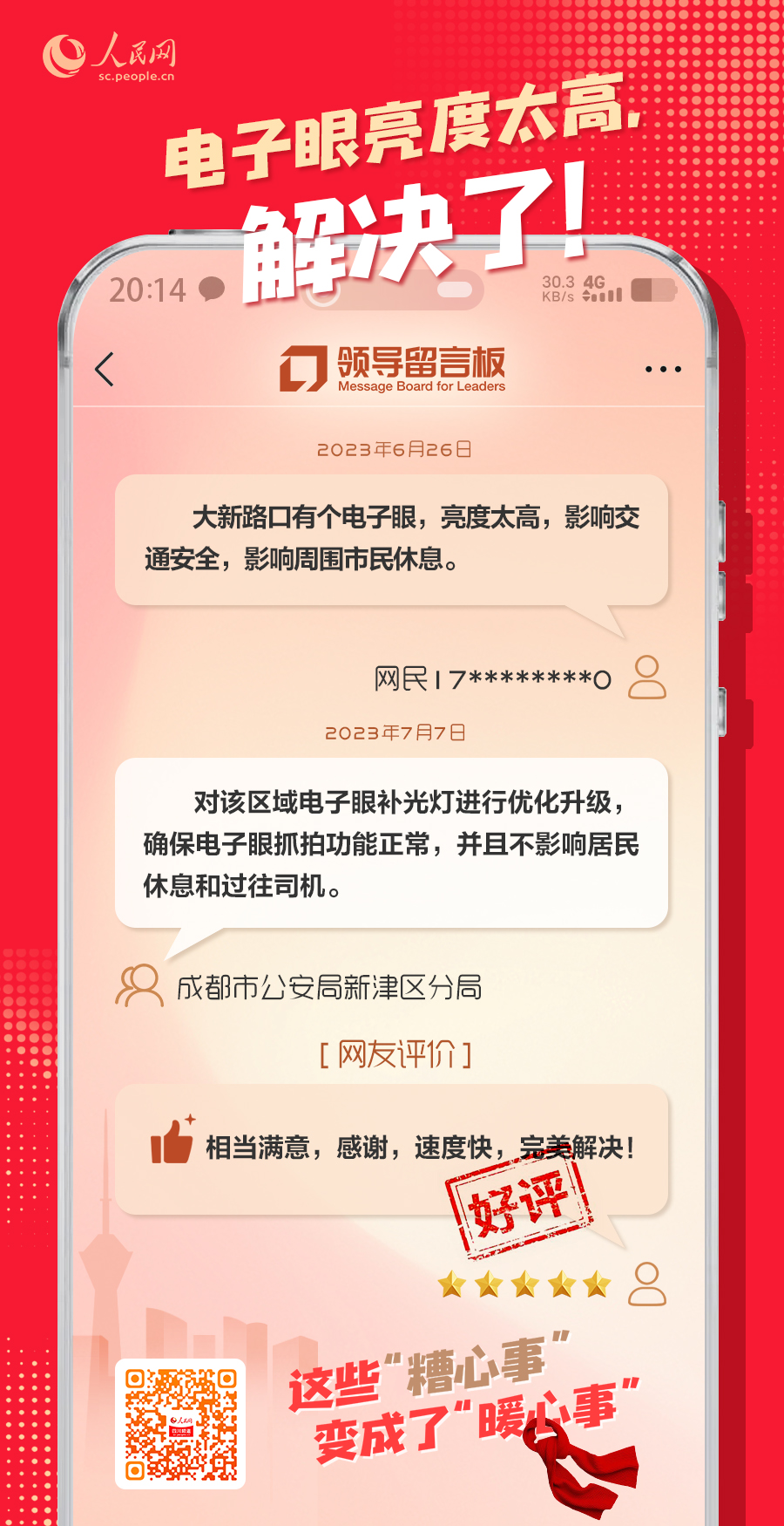 畫好網上網下“同心圓”,架好干群互動“連心橋”。2023年,四川各地各部門通過人民網“領導留言板”共收到群眾有效留言3.4萬余件,回復辦理“急難愁盼”3.3萬余件。2024年,新年伊始,人民網四川頻道盤點了過去一年四川網上群眾工作那些暖心故事,一起看看吧!