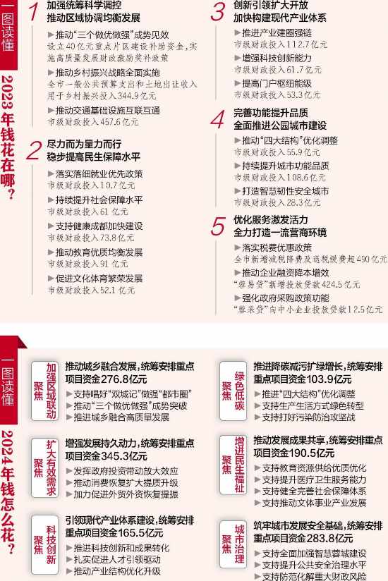 2月1日,《關于成都市2023年預算執行情況和2024年預算草案的報告》(以下簡稱《預算報告》)以書面形式提請市十八屆人大二次會議審查。