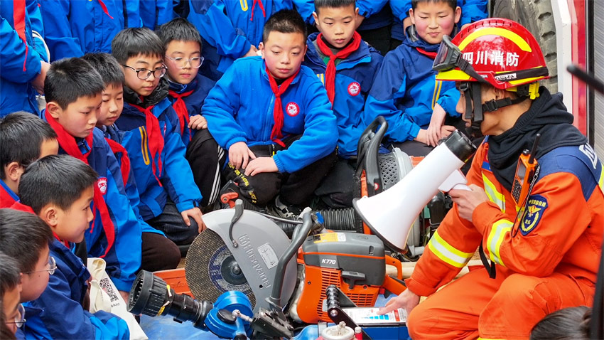 2月29日,仁壽縣黑龍灘鎮楊柳小學組織學生前往林區,感受冬春季節林區草木情況,邀請消防員結合森林防滅火的嚴峻形勢,實地講解森林常見火災隱患、發生原因、造成的危害,讓同學們身臨其境地認識到了森林防滅火的重要性,主動當好森林防火的義務宣傳員。(劉海天、潘帥)