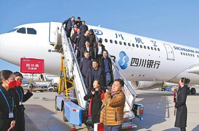 牢記囑托再出發,感恩奮進譜新篇。3月3日16時許,出席全國政協十四屆二次會議的住川全國政協委員乘機抵達北京。