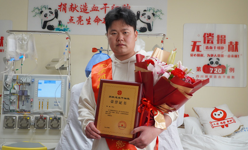 人民網成都3月9日電 “能在一個特殊的日子,做一件特別的事情,我感到無比榮幸……”3月5日是全國第61個學雷鋒紀念日,就在這一天,來自四川省樂山市犍為縣羅城鎮南陽村的黃凱在經歷了長達5個小時的采集過程后,成功捐獻了212毫升造血干細胞混懸液,為一名家住上海的8歲小男孩送去“生命的種子”。今年34歲的黃凱也成為了全國第17084例、四川省第720例、樂山市第50例、犍為縣第4例成功捐獻造血干細胞的志愿者。