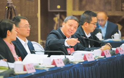 3月7日,十四屆全國人大二次會議四川代表團舉行小組會議。許強代表(左三)就相關防災減災工作發言。四川日報全媒體記者 歐陽杰 攝
