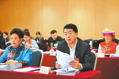 3月7日,在全國政協十四屆二次會議小組會議上,李為國委員(前排右)建議抓好大熊貓國家公園、若爾蓋國家公園建設,提升全域旅游接待能力。四川日報全媒體記者 楊樹 攝