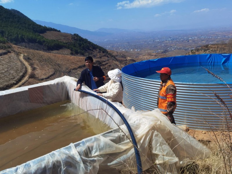 檢查蓄水設施。瀘州市江陽區結對幫扶鹽源縣工作隊供圖