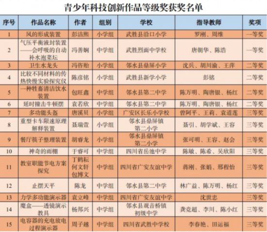 近日,由四川省科協、四川省科技廳、四川省教育廳聯合主辦的第38屆四川省青少年科技創新大賽在廣安市盛大舉行。此次大賽以“創新·責任·誠信·合作”為主題,吸引了全省青少年科技創新教育工作者和青少年學子的廣泛關注與參與。經過激烈角逐,廣安市共有21個項目獲省級獎項,同時第38屆四川省青少年科技創新大賽組織委員會為廣安市教育和體育局頒發了特別貢獻獎。一起來看看獲獎名單吧!
