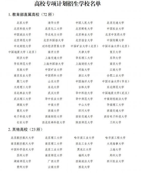 高校專項計劃定向招收邊遠、原貧困、民族等地區縣(含縣級市)以下高中勤奮好學、成績優良的農村學生。