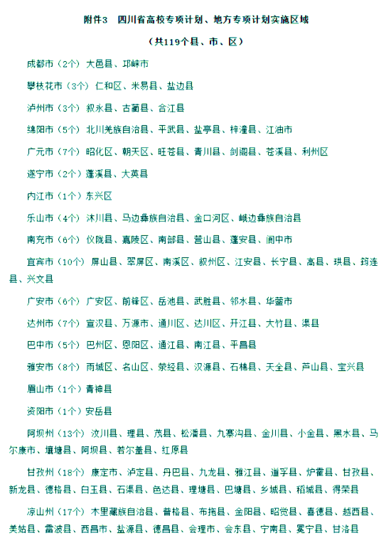 四川國家專項計劃、地方專項計劃、高校專項計劃實施范圍縣的考生,如擬報考相應類別專項計劃,應在戶籍所在縣(市、區)參加高考報名并按照《四川省2024年普通高校招生考試享受錄取照顧考生及特殊類型招生考生的申報與公示辦法》(可在省教育考試院門戶網站查詢,網址:www.sceea.cn)規定的專項計劃申報辦法自行申報。在規定時間內未進行申報的,視為自愿放棄專項計劃報考資格。