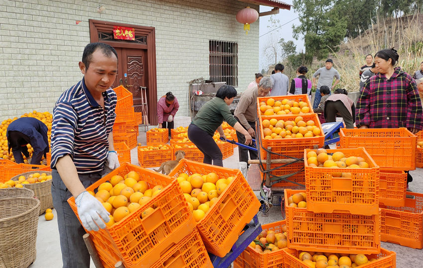 4月,正是晚熟血橙熱銷的季節。在“中國晚熟血橙第一村”——四川省內江市資中縣雙龍鎮三柏村,每天前來裝血橙的小貨車絡繹不絕。村黨委書記肖文華把自家地里摘下來的新鮮血橙一筐筐裝好,準備儲存一段時間再出售,“天熱就要漲價啦!”