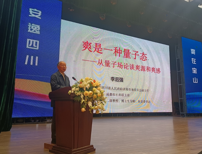 李后強主持論壇并作題為《爽是一種量子態》的主旨發言,他從量子場論談爽源和爽感,指出真正的“爽”是一種賦能,一種提神。他從量子電動力學、量子色動力學、超弦理論、希格斯場、霍金輻射等角度全面論述了人體微觀結構功能、爽學未來可能開發的領域和發展的主流方向,引起廣泛熱議。