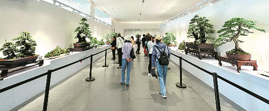 除了畫館,主展館的負一樓同樣值得一游。這里正在舉行2024成都世園會盆景國際競賽獲獎作品展覽和國際花藝競賽(月季競賽)獲獎作品展覽。市民游客可以欣賞到各式各樣的盆景藝術,這些盆景經過園藝師的精心設計和修剪,形態各異,有的蒼勁有力,有的婉約柔美,仿佛大自然的微縮景觀。在這里,游客可以近距離感受到園藝藝術的魅力,領略到園藝師的匠心獨運。
