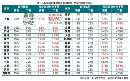 廣州的購房首付比則調整為首套房15%、二套房25%,并成為當前一線城市中唯一取消房貸利率下限的城市。5月28日,廣州主要銀行就房貸利率達成共識,首套房利率3.4%,二套房利率3.8%。