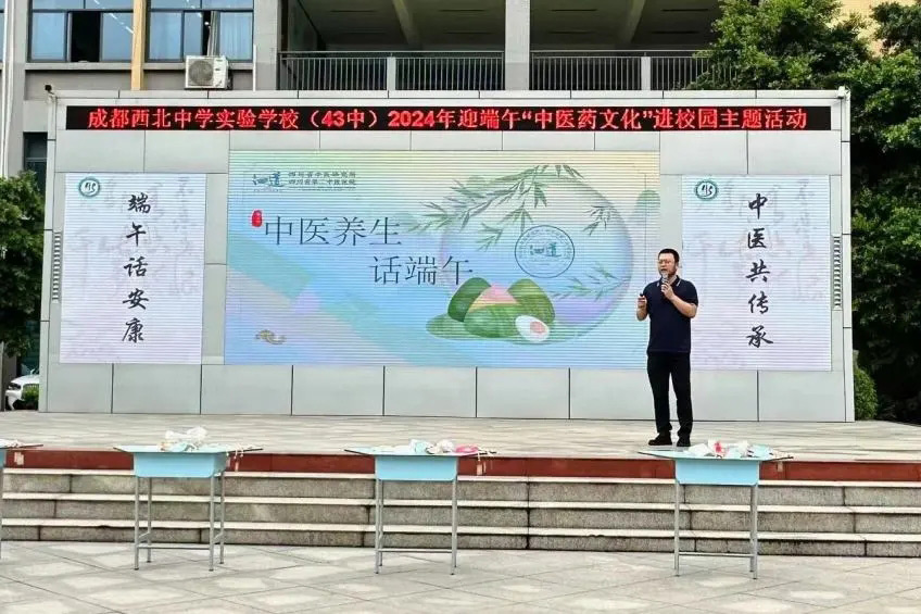 “虎符纏臂,佳節又端午”。6月7日上午,四川省第二中醫醫院走進成都市第四十三中學,開展了“端午艾草香 中醫話健康”中醫藥文化進校園主題活動。