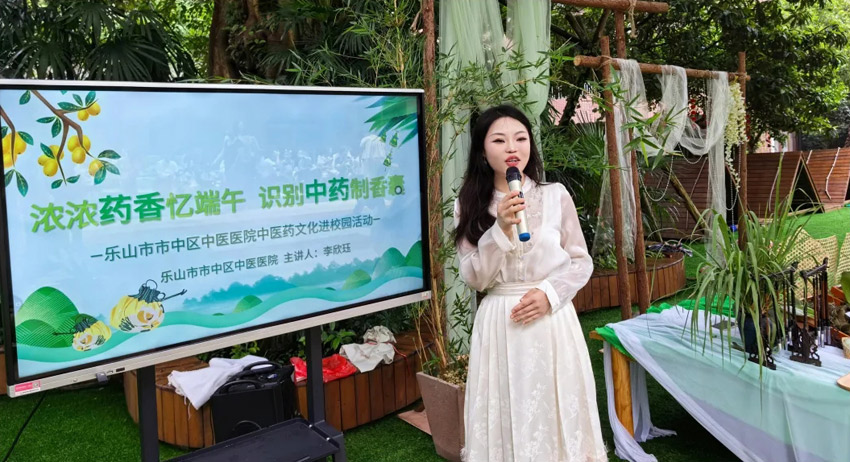 識別中藥做香囊活動。樂山市市中區中醫醫院供圖