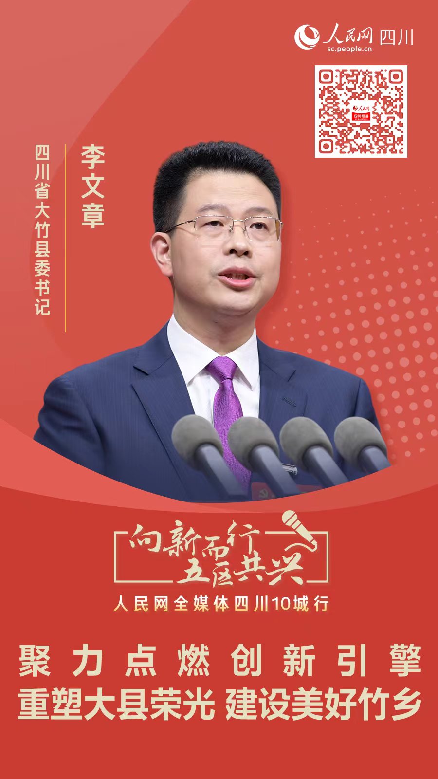 在此期間,大竹縣委書記李文章接受了人民網專訪,分享大竹縣發展新興產業,加快西部地區產業轉型升級、創新發展新質生產力、推進中等城市規劃建設、“擦亮‘川字號’土特產品牌”助力鄉村全面振興、如何實現“向新而行 向高而攀”的考量和實踐。