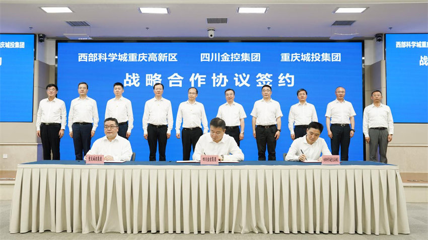 四川金控集團與重慶高新區管委會、重慶城投集團簽署戰略合作協議,圍繞川渝重點產業強化金融合作。四川金控供圖