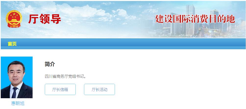 近日,四川省商務廳網站“廳領導”欄目、四川省經濟合作局網站“領導簡介”欄目進行更新。據最新領導名單顯示,惠朝旭已任四川省商務廳黨組書記,李江已任四川省經濟合作局黨組書記。