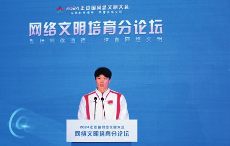 汪順在2024年中國網絡文明大會網絡文明培育分論壇上作分享。