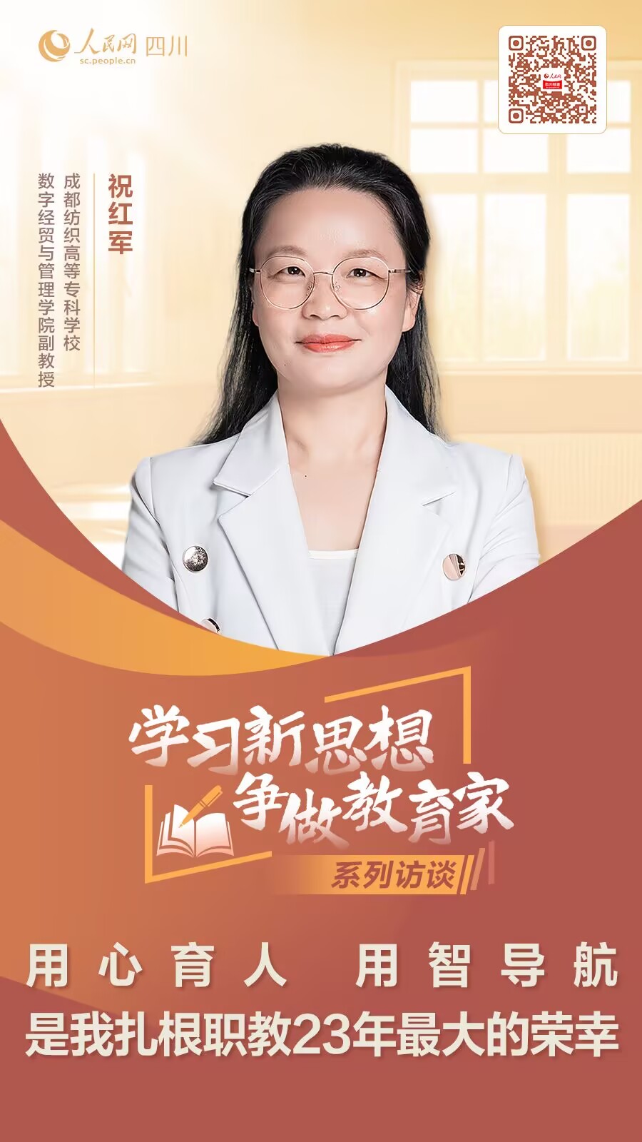 2024年9月10日是我國第40個教師節,主題是“大力弘揚教育家精神,加快建設教育強國”。根據教育部、人民日報社、全國少工委《關于在全國中小學開展2024“學習新思想 做好接班人”主題活動的通知》,由四川省教育廳指導,人民網四川頻道、四川省教師發展中心、四川省教育學會邀請川內40位教育工作者,開展“學習新思想 爭做教育家——人民網聚焦四川教育強省系列訪談”,全面展現廣大教育工作者堅定“躬耕教壇、強國有我”的志向與抱負,大力弘揚教育家精神,加快建設教育強省,以中國式現代化引領四川現代化建設的生動實踐。