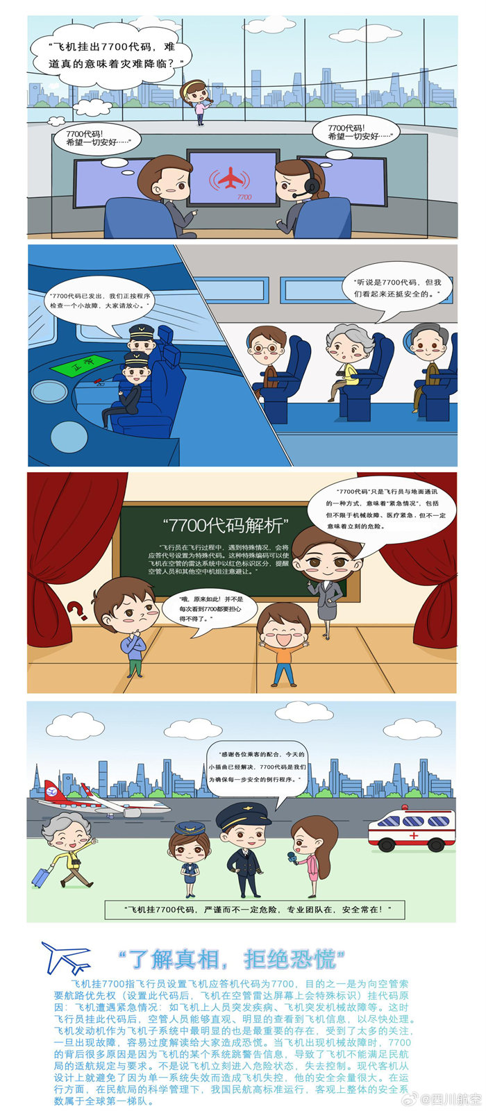航班起飛后掛出7700代碼 川航通報:出現機械故障,旅客已安全到達