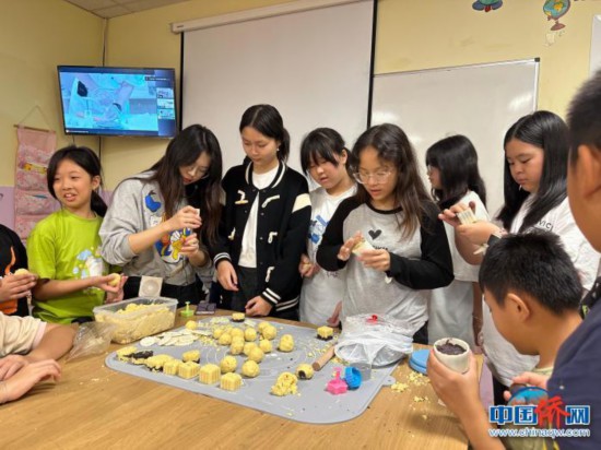 西班牙西中友好中文學校的學生們正在制作冰皮月餅。西班牙西中友好中文學校供圖