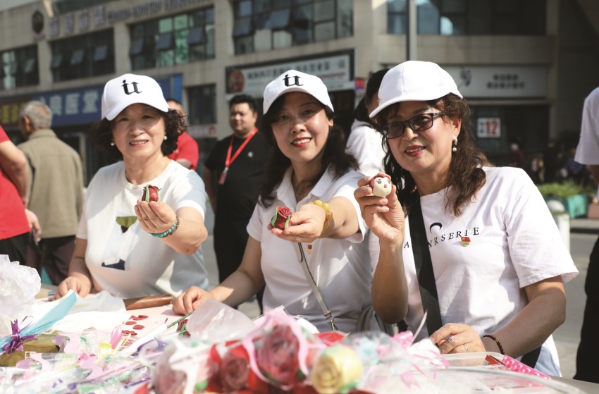 “五一”勞動節,“銀發”志愿者們為一線勞動者制作玫瑰花饅頭。曾凱攝