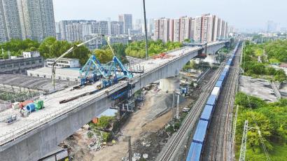 11月5日,成渝中線高鐵動走線跨沙河特大橋連續澆梁實現合龍。中鐵八局供圖