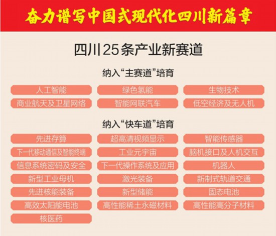 經濟和信息化廳相關負責人表示,25條賽道充分考慮了四川產業基礎、各地發展情況及產業未來趨勢。