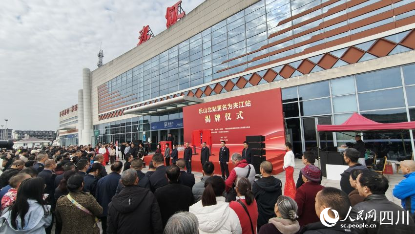 群眾們共同見證夾江站的揭牌。陳萱攝