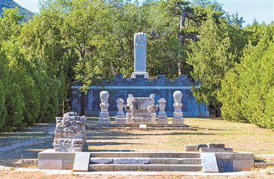 據記載,崇禎帝整個安葬過程僅耗銀230余兩,且全部靠募捐完成。而李自成雖然安葬了崇禎皇帝,卻并未為這座陵墓命名?!叭缃裎覀兛吹降拿魉剂?,實際是由清朝命名的?!焙鷿h生介紹,李自成的大順政權敗退后,清軍入關。為收買人心、籠絡漢族士人為清廷效力,多爾袞下令為崇禎帝“造陵墓如制”,營建了地上園寢建筑,并命名“思陵”。在思陵前方還有一座陪葬墓,系崇禎帝貼身太監王承恩的墓葬。