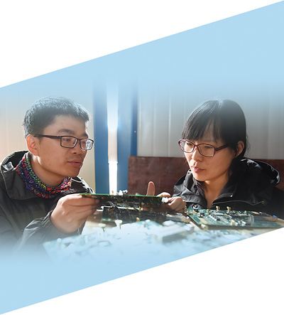 李驄(左)和同事在海子山上檢查繆子探測器電子學板。
