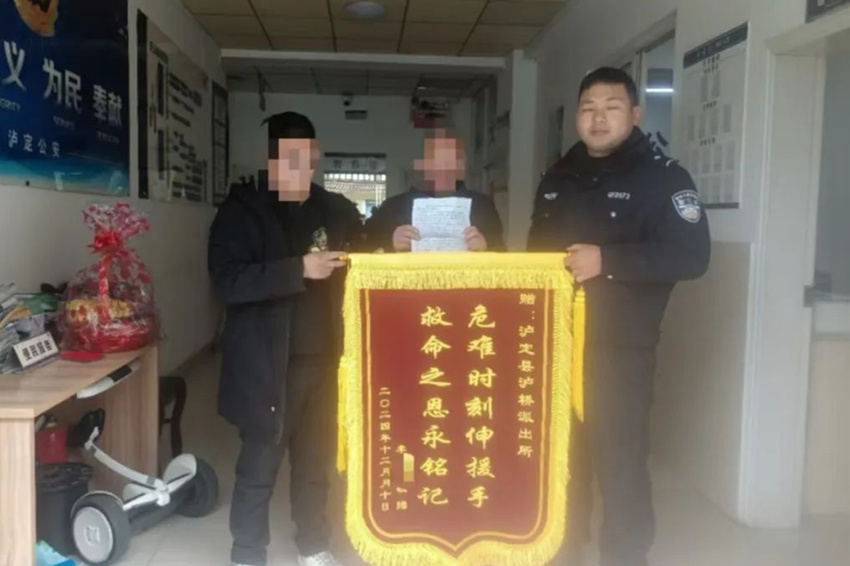 男子家屬送來錦旗,感謝瀘橋派出所民輔警。瀘定公安供圖