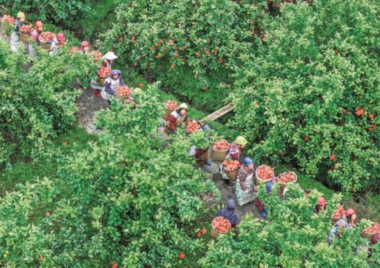 近年來,花廟嘴村以“村集體+合作社+公司+農戶”的發展模式,打造集觀光、采摘、休閑于一體的檸檬產業園,帶動村民增收。特約攝影師 邱海鷹 攝