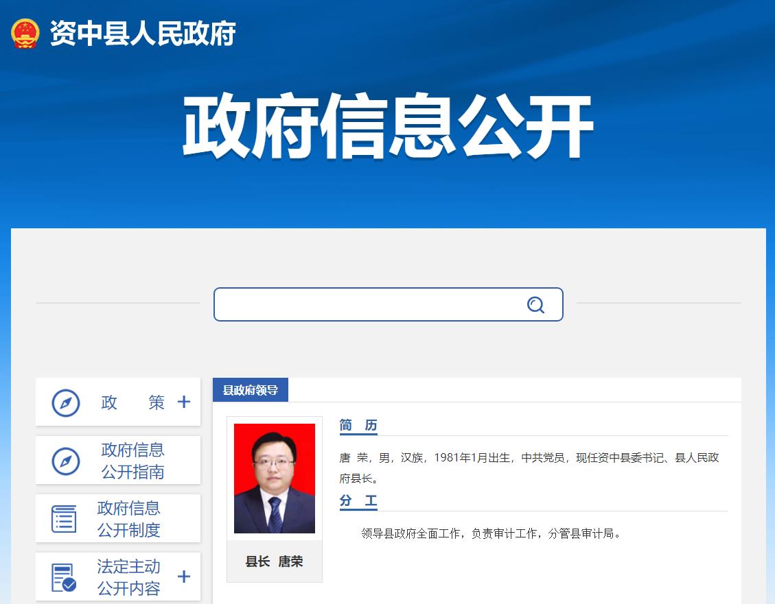 人民網成都12月18日電 (李強強)資中縣政府網站近日更新顯示,唐榮已任資中縣委書記。