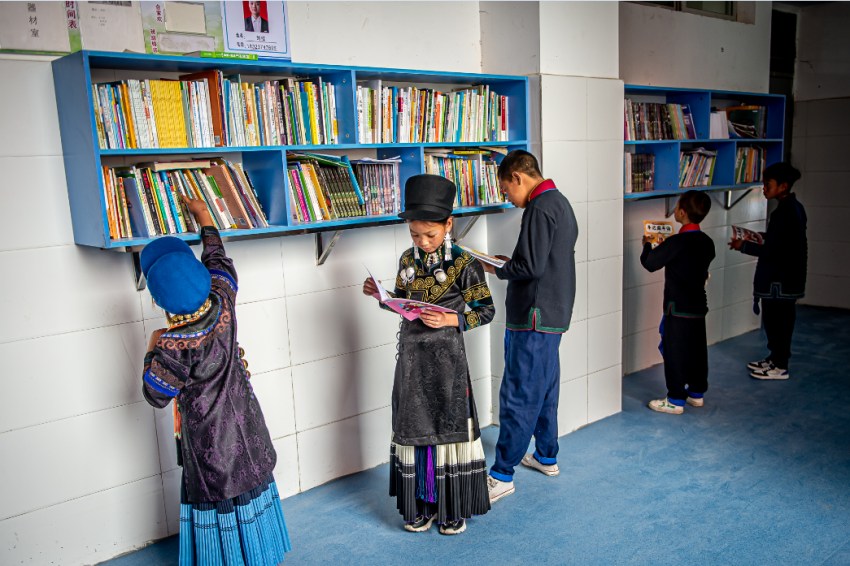 國家能源集團援建布拖縣阿布澤魯小學學生在愛心書屋讀書。國家能源集團四川公司供圖