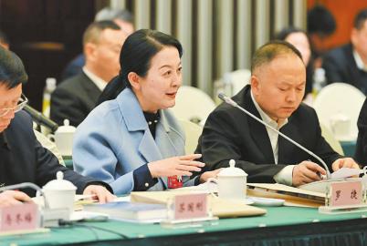 羅捷代表(中)建議,探索用好高鐵快運功能,大力發展高鐵貨運。