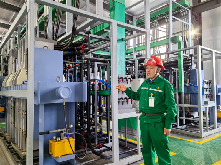 在氧化分廠的雙極膜電解裝置前,吳倫飛停下腳步。他指著眼前先進的設備,眼中閃爍著自豪的光芒:“這是我們自主研發的雙極膜技術,可以將草甘膦廢水中的氯化鈉轉變為鹽酸和液堿,徹底解決了行業含鹽廢水處理的痛點?!边@項技術不僅實現了氯元素和鈉元素的循環利用,還為公司每年創造了1300多萬元的經濟效益。