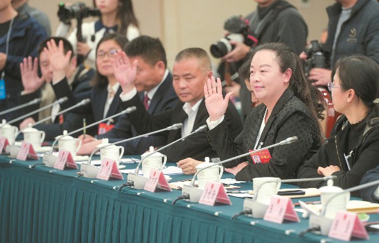 “代表·局長面對面”咨詢交流會現場,代表舉手提問。