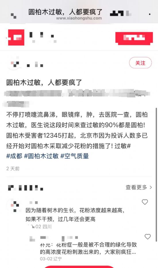 在社交平臺上,搜索相應關鍵詞會發現,關于“成都圓柏樹過敏”等話題,網友討論熱烈。
