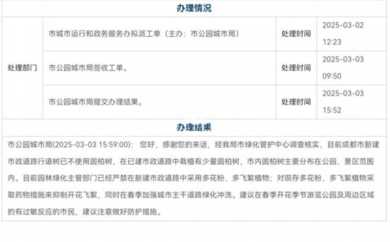 成都市公園城市局針對網友反映的問題作出的回復