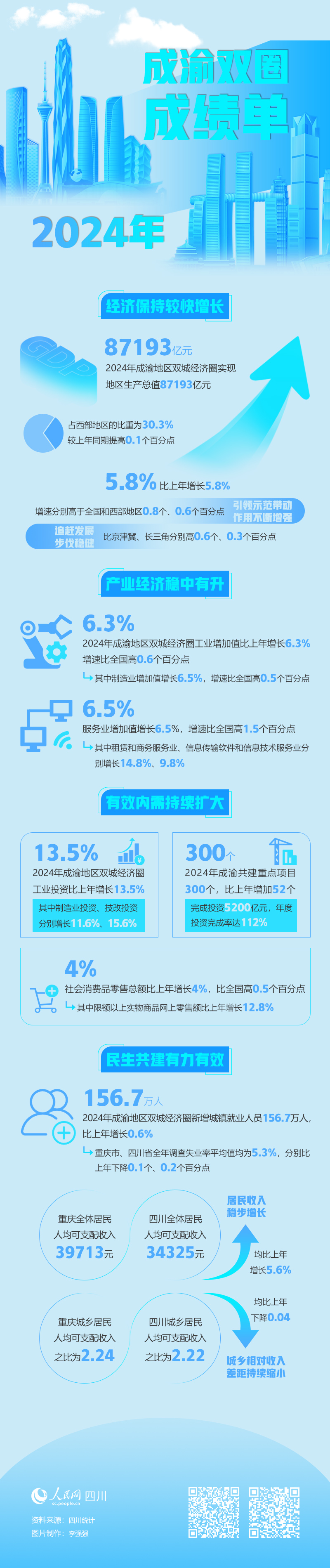 3月24日,2024年成渝“雙圈”經濟運行情況公布。2024年,成渝“雙圈”交出了怎樣的成績單?一圖帶你了解。